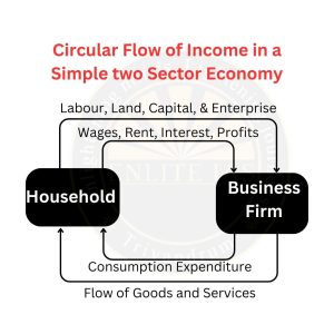 - Circular Flow of Income: The circular flow of income is a model of the economy in which major exchanges are represented as flows of money, goods, services, etc. among the economic agents. As per this model, money and goods & services flow in the opposite direction but move in a closed circuit.