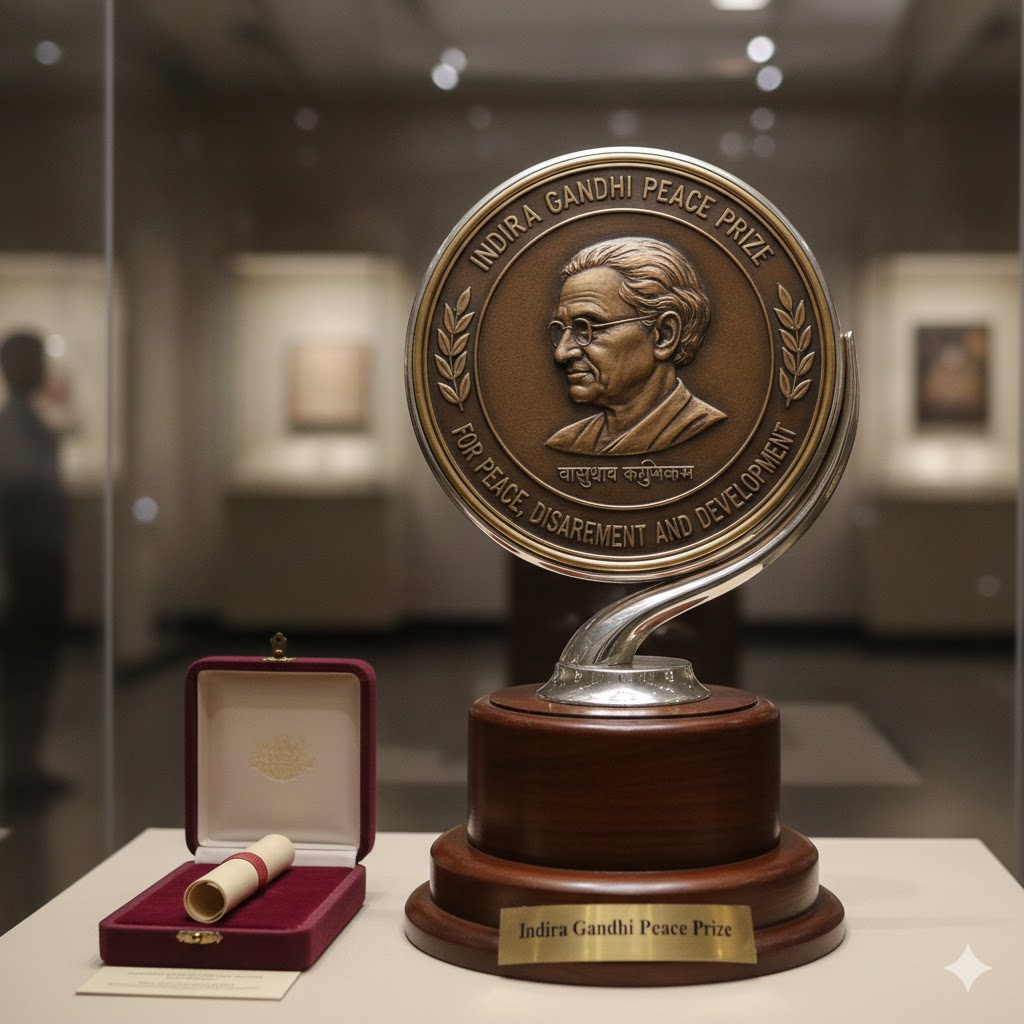 Indira Gandhi Peace Prize Indira Gandhi Prize for Peace, Disarmament and Development, is an annual award accorded by the Indira Gandhi Memorial Trust. The 2025 is awarded to Mozambican rights activist Graca Machel. Source: The Hindu