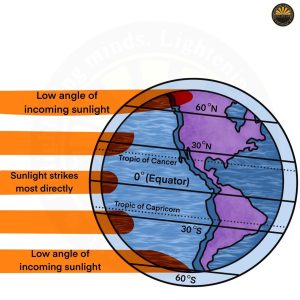 - Factors Affecting Insolation – Solar constant, the angle of incidence, the duration of the day, distance from the Sun, and transparency of the atmosphere.