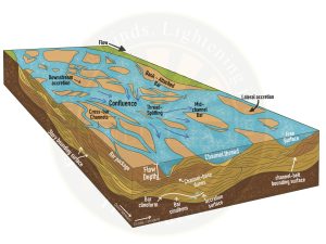 - In plains, channels shift laterally and change their courses occasionally leaving cut-off courses which get filled up gradually by relatively coarse deposits.
