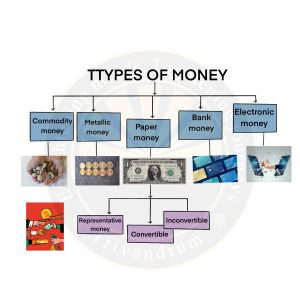 - Fiat Money: Fiat money is a type of currency that is not backed by a physical commodity, such as gold or silver. Its value is derived from the government that issues it and the public’s faith in that government. Currency notes and coins in India are examples of fiat money.